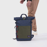 Roll Top Backpack - Navy and Khaki